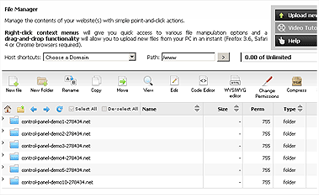 With drag 'n' drop file uploads supported, now this is something really wonderful - you no longer require FTP client software to upload files. Simply select the files on your computer and drag them to your browser window - the upload will start momentarily. You will also be able to move files around the File Manager making use of the built-in drag 'n' drop functionality.